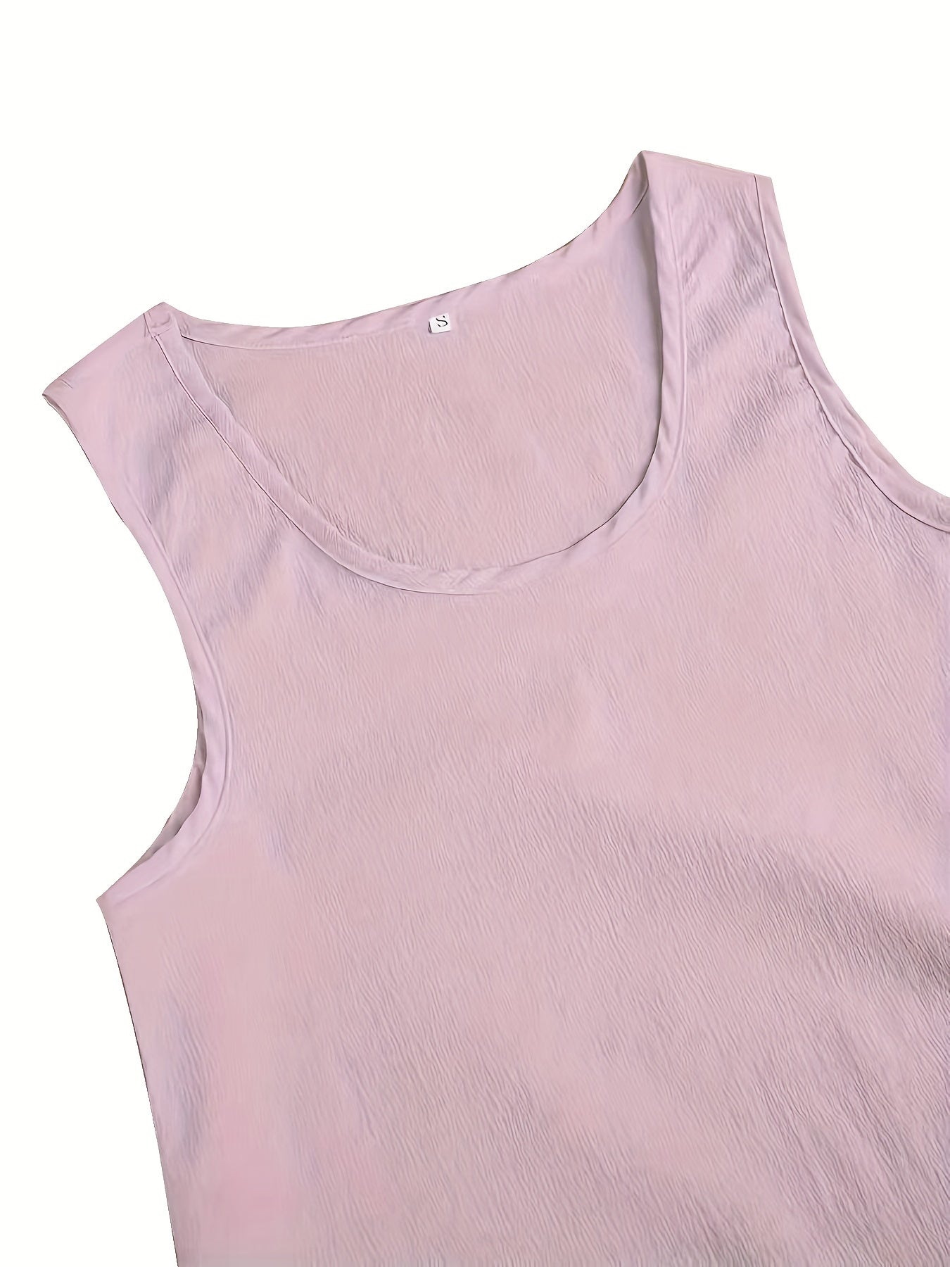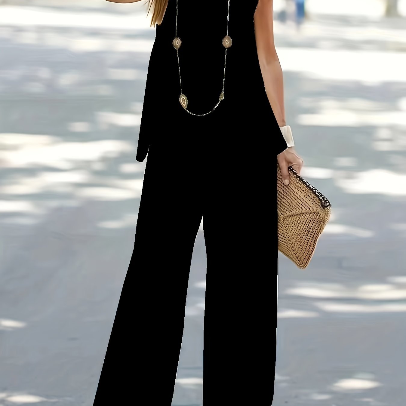 Solid Matching Two-piece Set, Casual Sleeveless Tank Top & Loose Pants Outfits, Women's Clothing