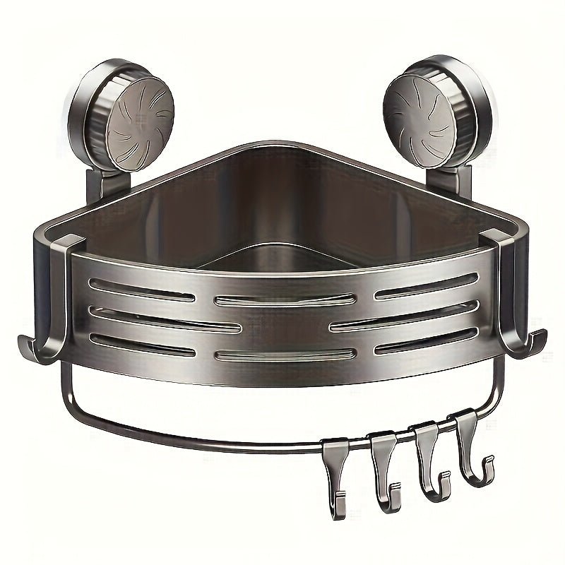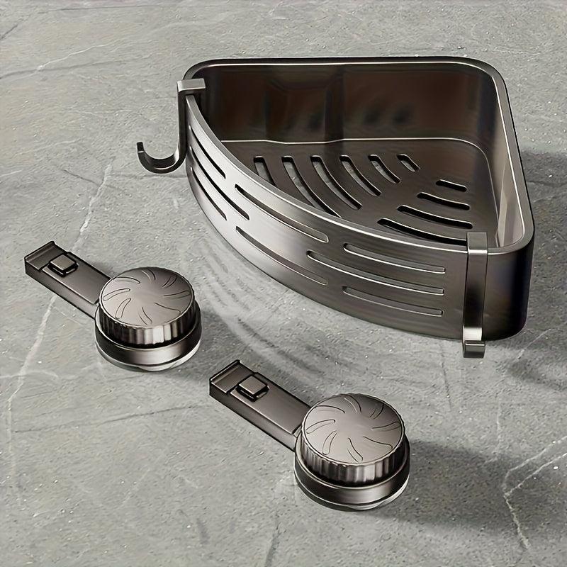 Space-Saving Suction Cup Bathroom Rack - No Drilling Required, Strong Triangular Shelf with Hooks, Suitable for Shower and Toilet Wall/Tiles, Multifunctional Storage Organizer, Available in 4 Seasons