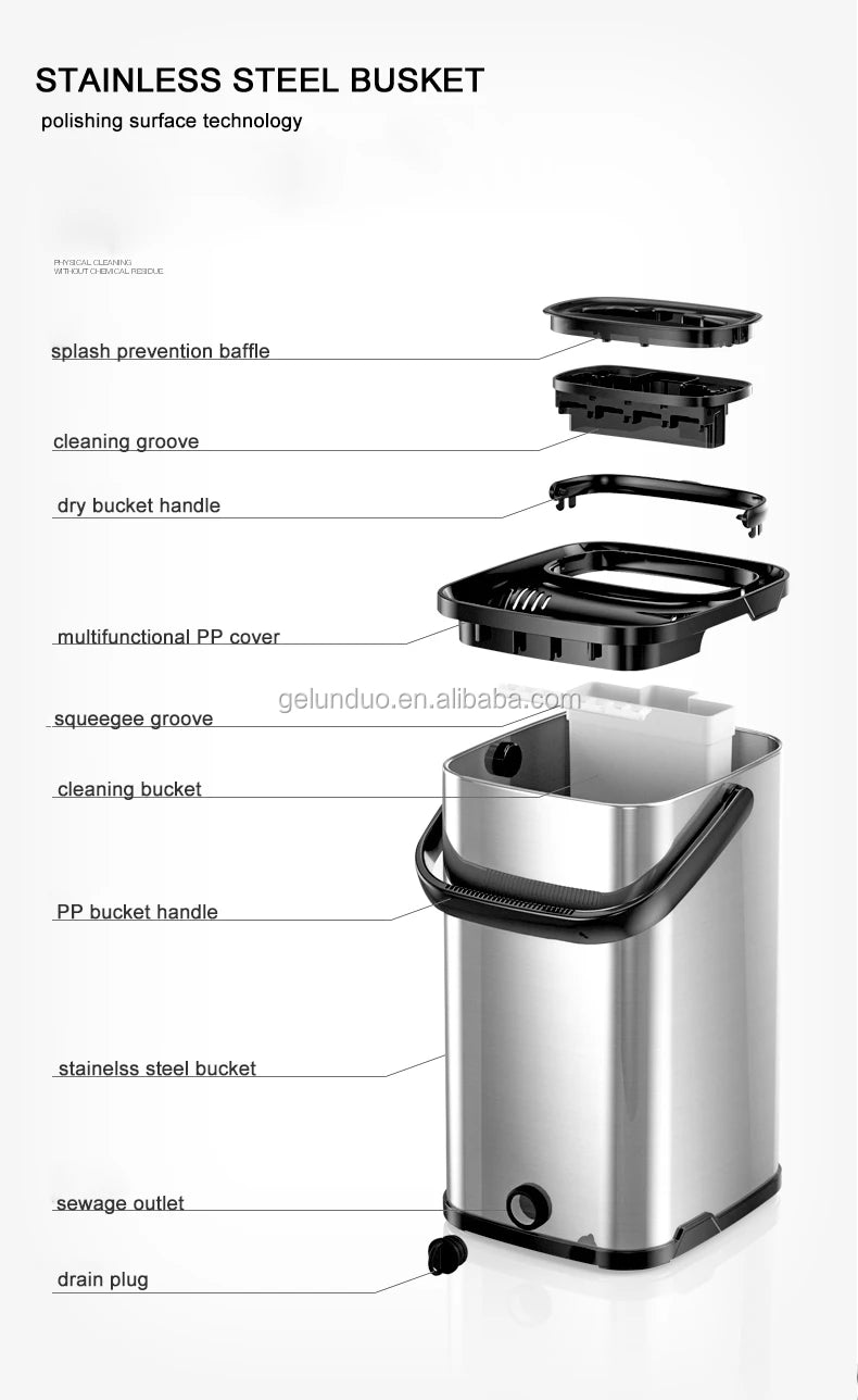 2021 new design hands-free flat mop ,high quality stainless steel bucket makes this mop more durable ,super microfiber makes the mop ready to clean different environment .180° rollover close to the ground and 360°rotation operating space ,kill all kinds of dust pollution and creat a comfortable environment for your family .