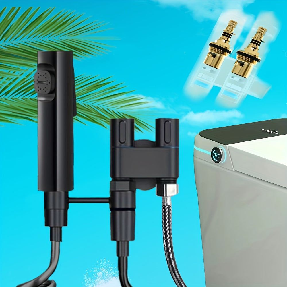 Stainless Steel Heavy-Duty Wall-Mounted Shower System with Adjustable Vertical Spray Gun - Dual-Outlet Angle Valve (G1/2 Male Thread) for Bathroom,, Car Wash - ABS Hose Compatible, Polished Chrome & Valve Core
