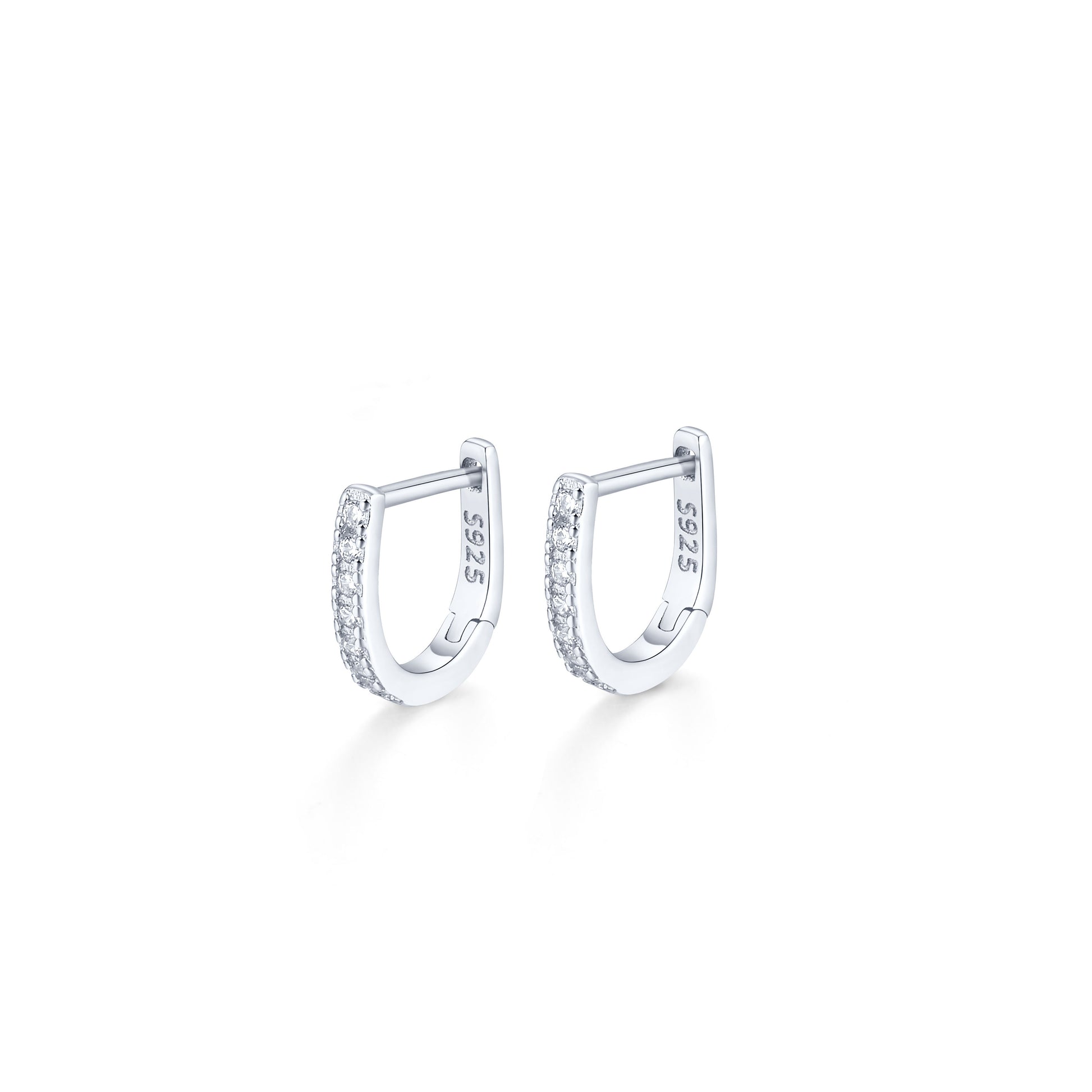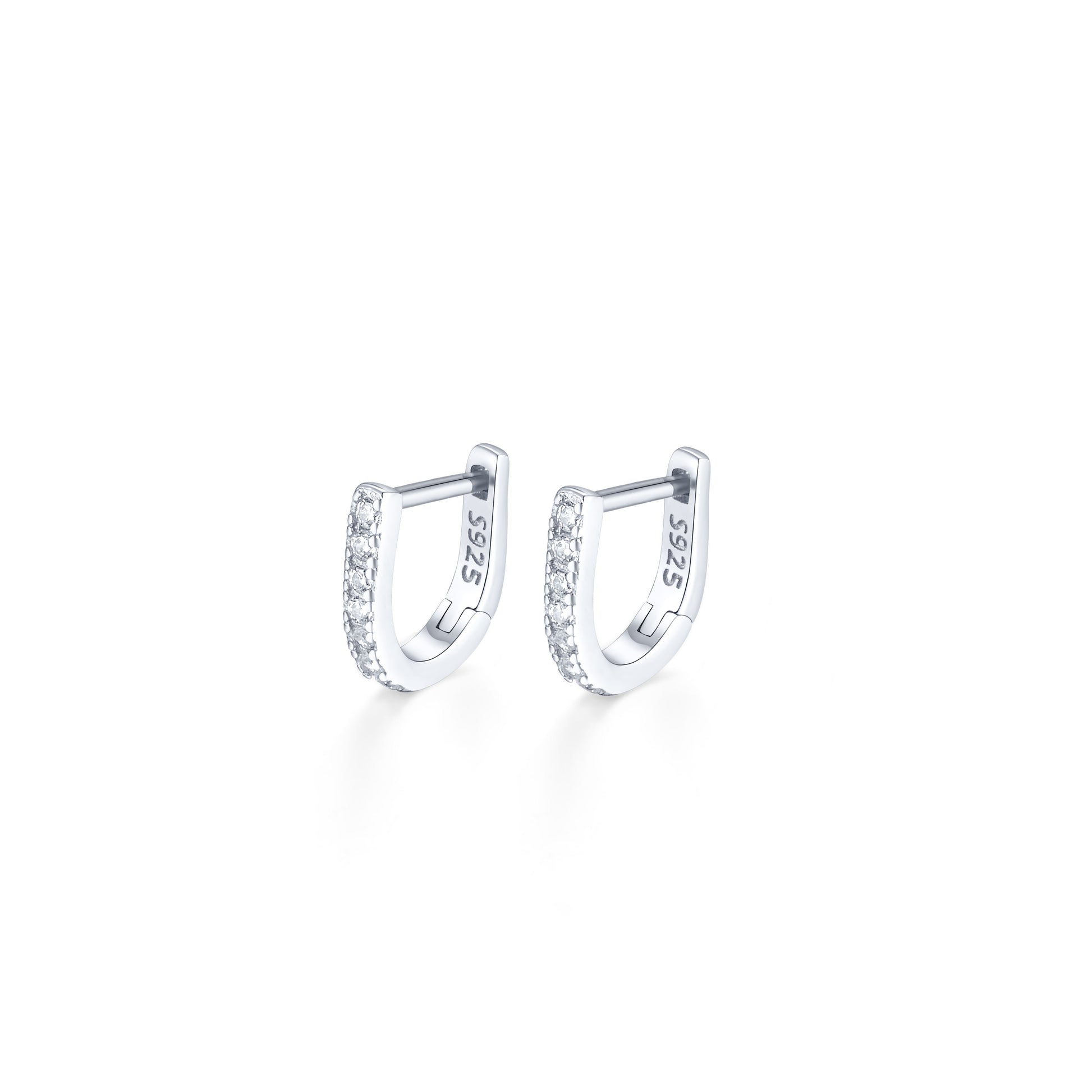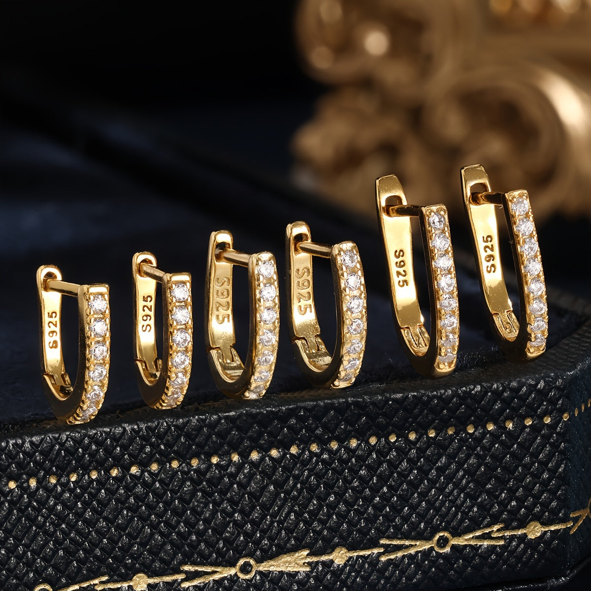 Sterling 925 Silver Jewelry Full Shiny zirconia Decor Hoop Earrings Elegant Minimalist Style Delicate Female Gift