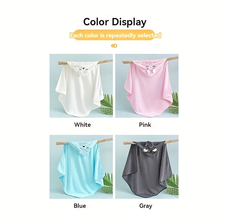 Super Absorbent Microfiber Baby Bathrobe - Adorable Elephant Hooded Towel with Matching Hat, Soft & Cozy for Boys and Girls 0-2 Years, Cartoon Design, Machine Washable, Baby Bath Accessories