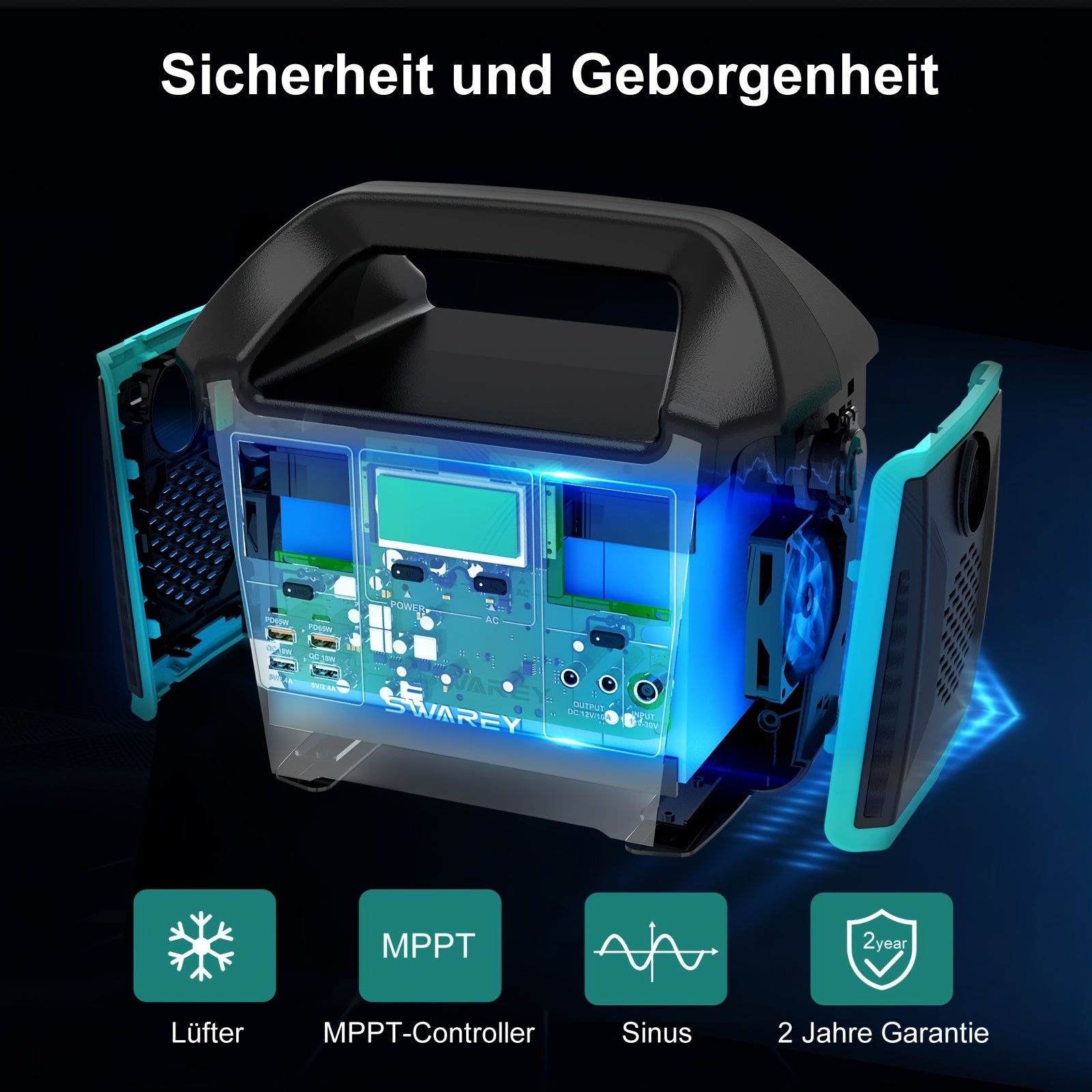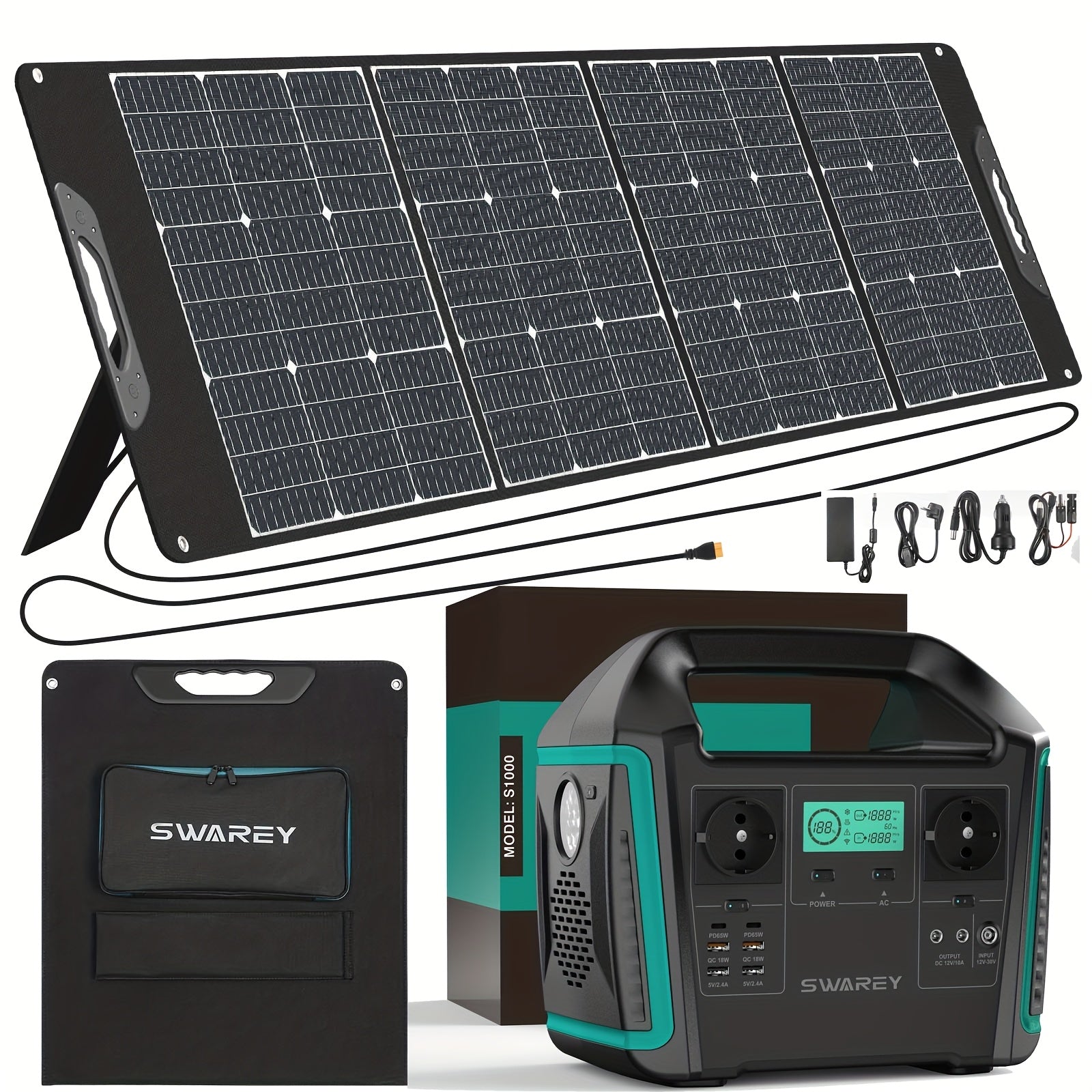 SWAREY 725.76Wh Solar Generator, Portable Power Station, 1000 W (Surge 1500 W) AC Outputs/Pure Sine Wave, Power Bank Emergency Generator, 2 X 65 W USB-C Connection, Power Generator Battery for Outdoors, Camping, Travel, Fishi