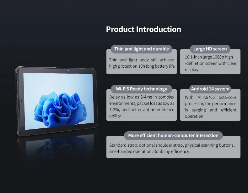 TC100-Lite 10.1inch Android 14 Industrial Rugged Tablet PC 1920x1200 Display Resolution 4+64GB MTK6765 CPU 10000mAh Battery New