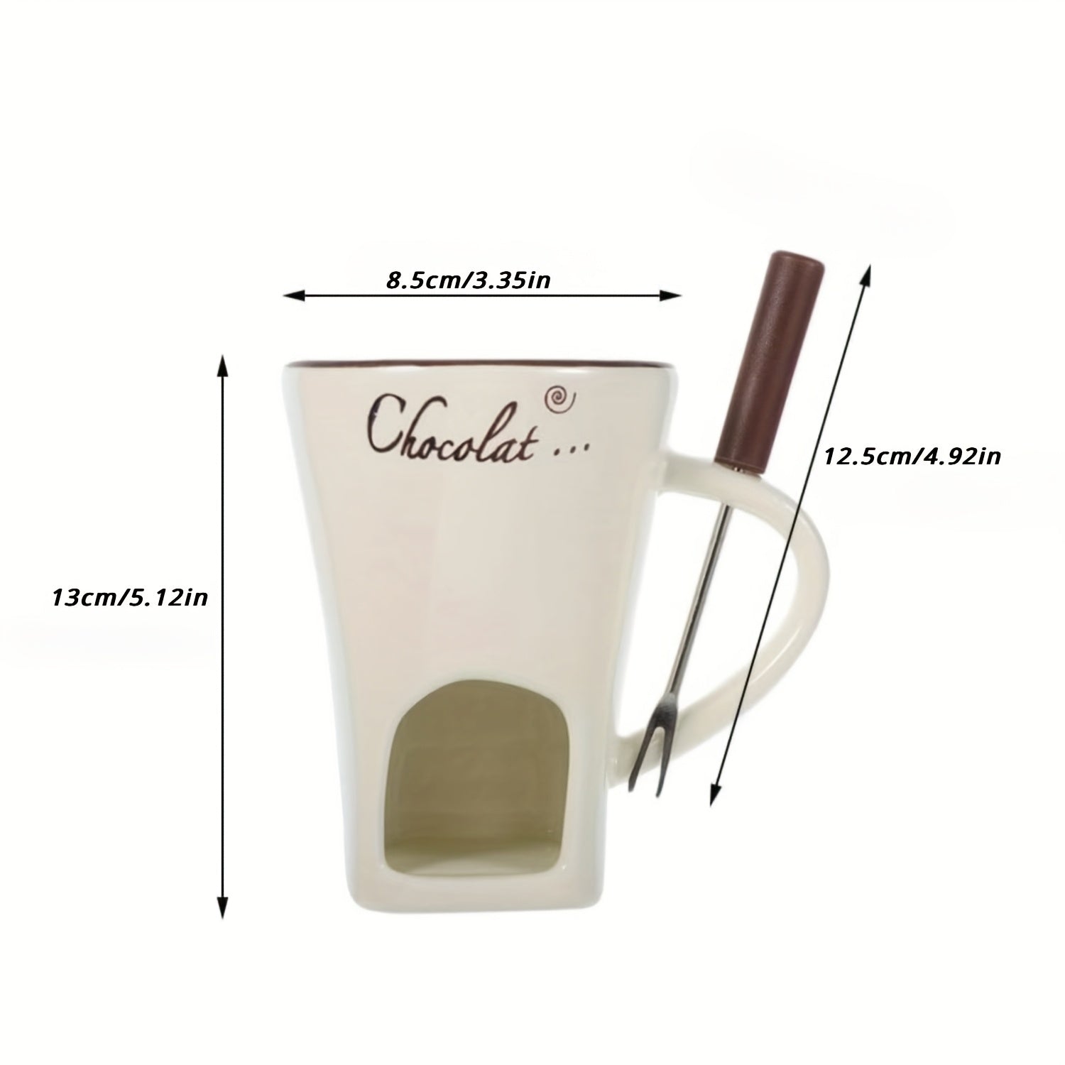 TFS Chocolate Fondue Mug - Ceramic, Reusable, Hand-Wash Only, Multipurpose Hot Chocolate & Fondue Pot with Whisk, Ideal for Cheese, Caramel, Butter, Hot Chocolate Making | Whisked Drinkware | Durable Drinkware