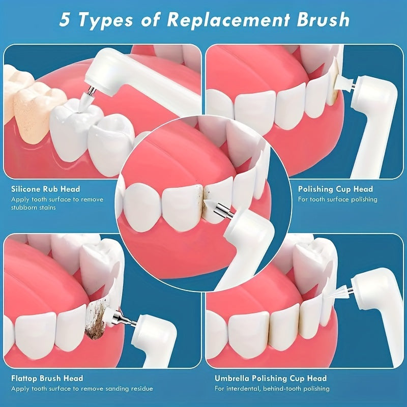 Tooth Polisher, Plaque Remover For Teeth Whitening Dental Tools Electric Tartar Polishing Teeth Cleaning Kit With LED Light 5 Speed Modes With 5 Replacement Brush Heads