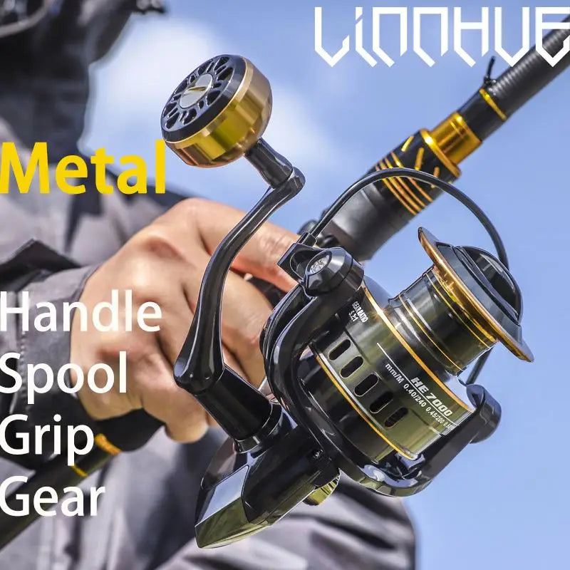 Topline Fishing Reel HE500 800-7000 High Quality Spinning Reel Gear Ratio 5.2:1 Metal Spool Saltwater Reel Fishing 8KG Max Drag