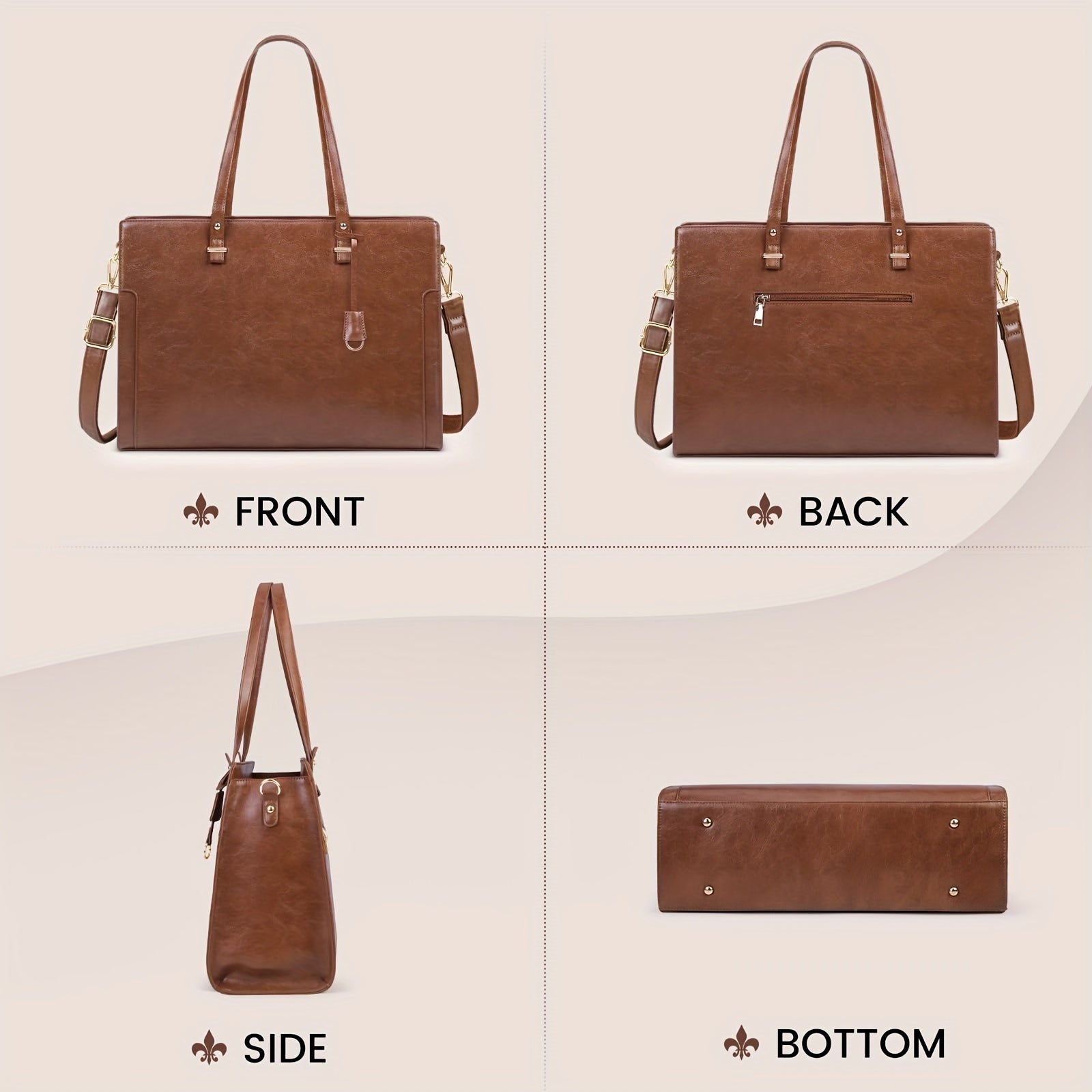 Vintage Brown Laptop Tote Bag for Women - 39.62 cm High Quality Business Office Shoulder Handbag with Multiple Compartments, Adjustable Strap & Golden-Tone Hardware, Textured Finish, Laptop Bag