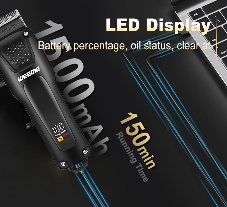 WEEME 3pcs Men's Grooming Kit - LCD Electric Clipper + Cordless Shaver + T-Blade Trimmer | USB-C Rechargeable w/Brushes & Care Accessories | Durable Hair/Facial Grooming Tools for Home & Travel