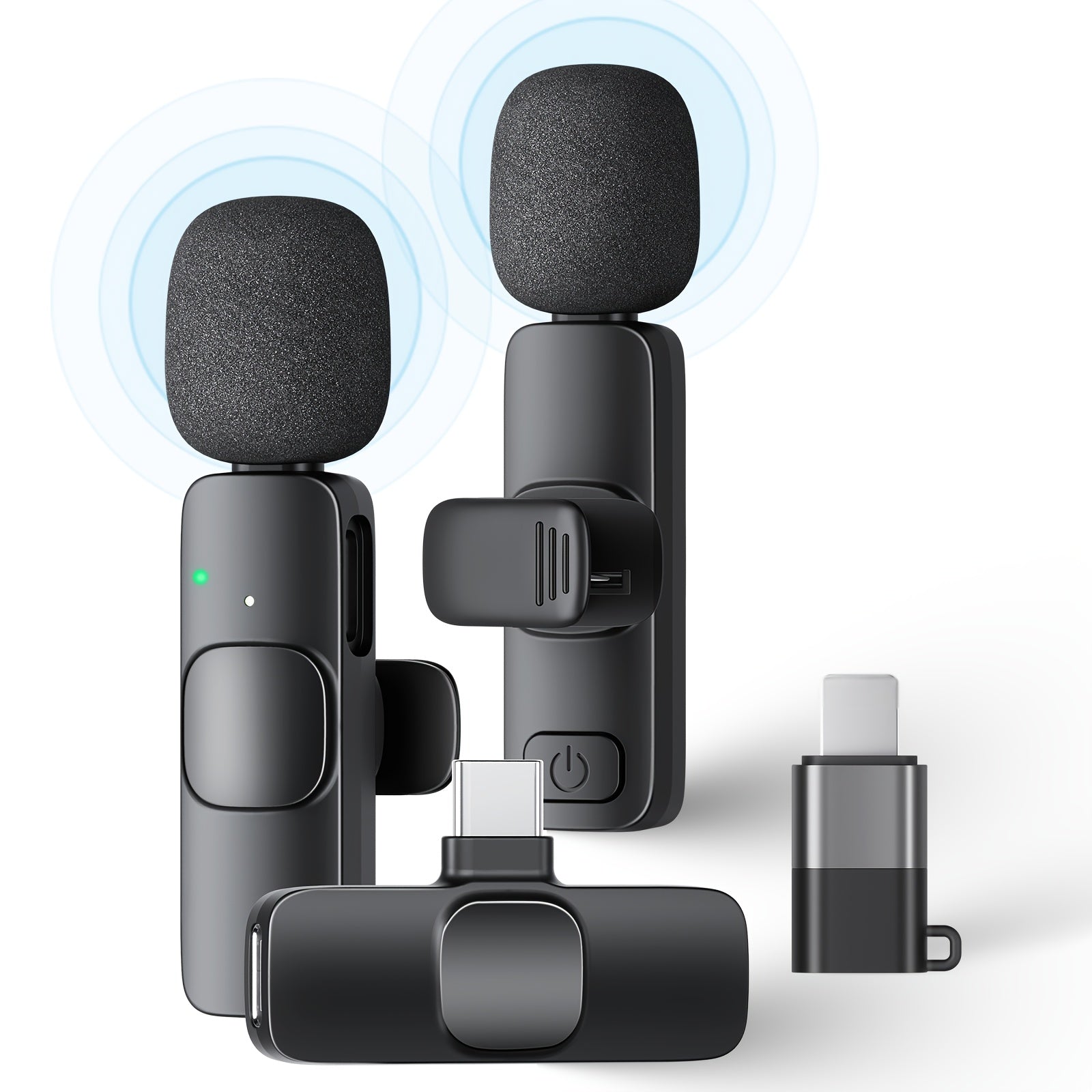 Wireless Lavalier Microphone For IPhone for ipad Android With Charging Case 80h Battery Life, Noise Cancellation, 49.99meter Range Plug-Play Clip On Lapel Mic For Video Recording, Vlog, Live Streaming
