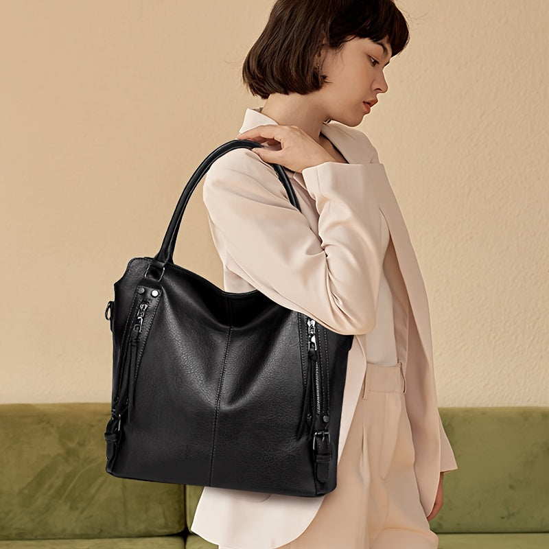 Women'S Large Capacity Tote Bag - Stylish Brown with Golden-Tone Hardware, Zipper Closure & Detachable Strap, Perfect for Work Or Everyday Use, Versatile Carryall | Elegant | Durable, Large Tote Bag