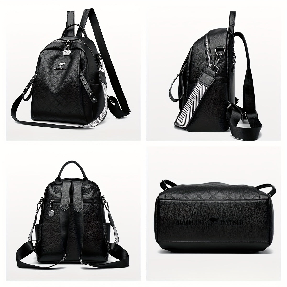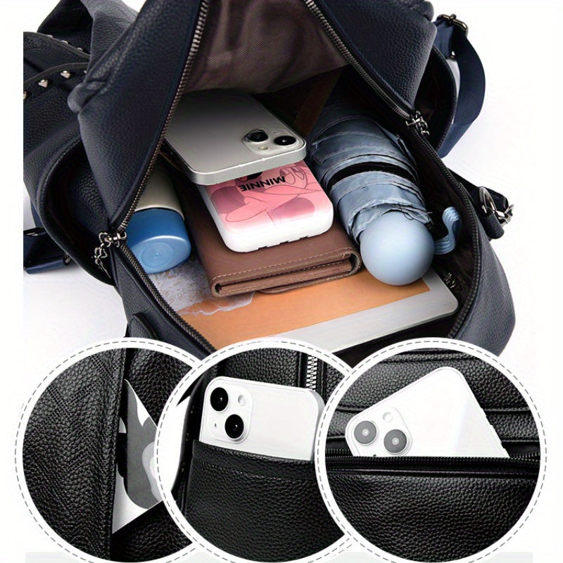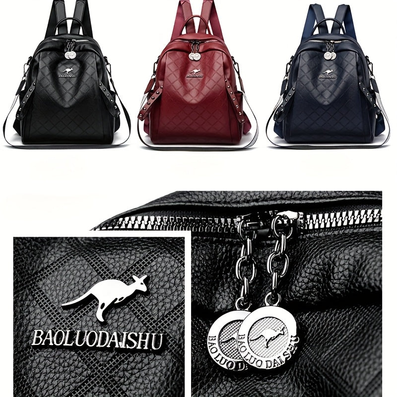 Women'S Quilted Backpack - Stylish Synthetic Travel & Casual Bag with Multiple Compartments, Adjustable Padded Straps, and Zipper Closure, Black/Red/Blue, Backpack for Travel, Secure Daypack, Quilted Texture, Synthetic Bag