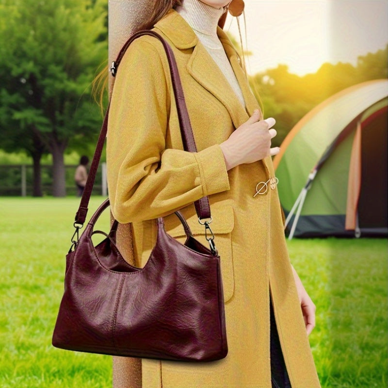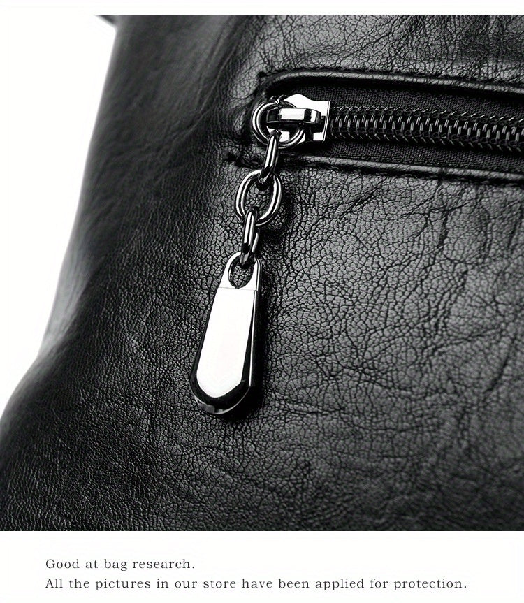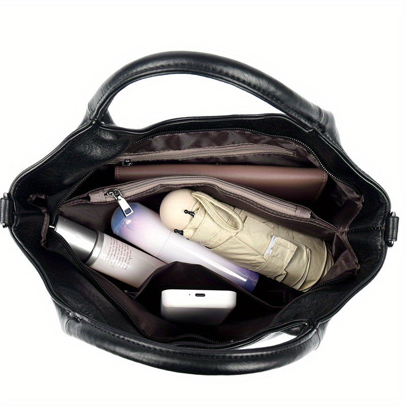 Women'S Stylish Black Leather Tote Bag - Large Capacity, Multi-Compartment Design with Zipper Closure, Perfect for Work, Travel, and Everyday Use, Travel Tote Bag | Versatile Shoulder Bag | Durable Zipper Closure, Large Tote