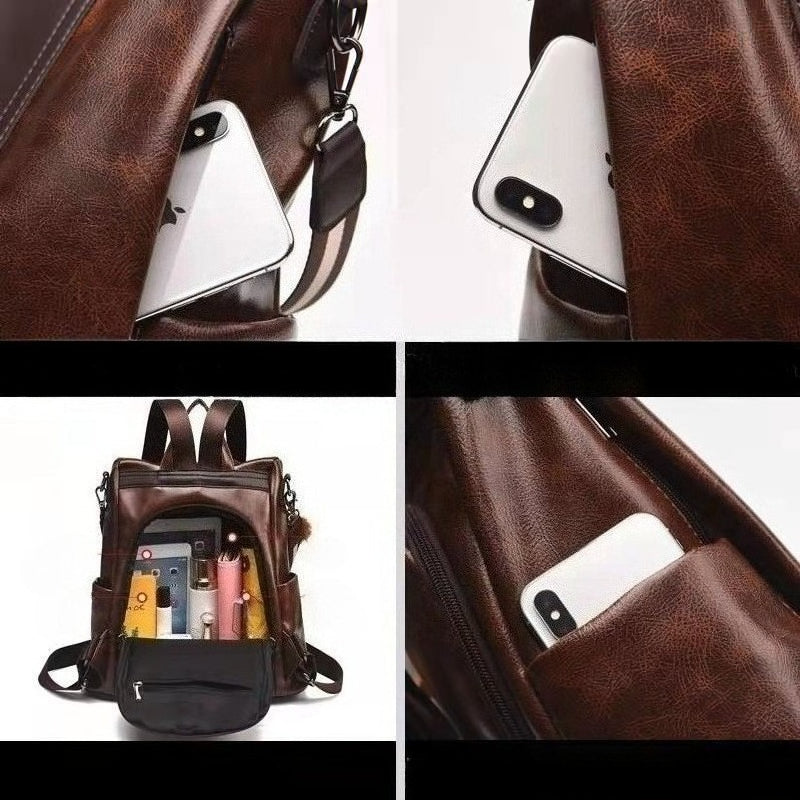 Women's Synthetic Leather Backpack Anti-Theft Large Capacity Bookbag with Adjustable Padded Shoulder Straps, Golden-Tone Hardware (Burgundy/Love-Themed) - Elegant Synthetic Leather Handbag for Travel,, College, Gift for Wife/