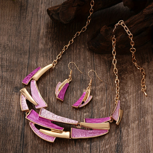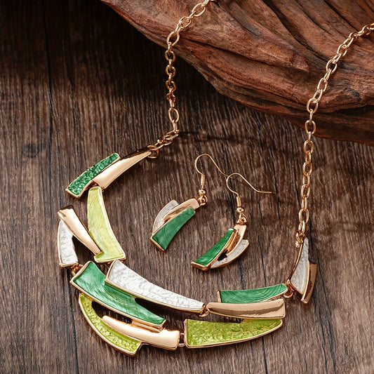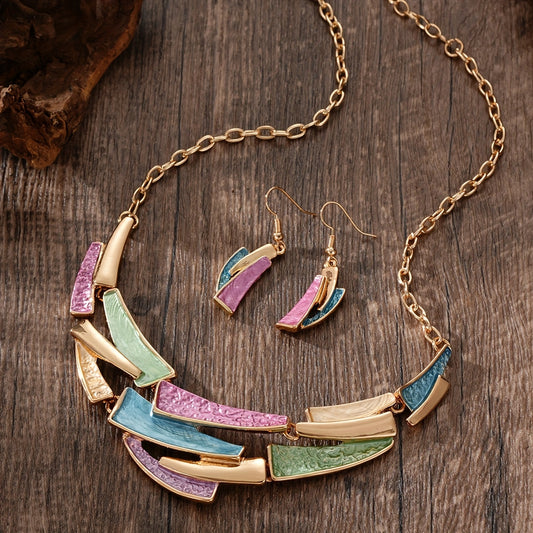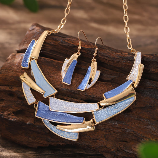 Conjunto de Joias Feminino Geométrico Dourado
