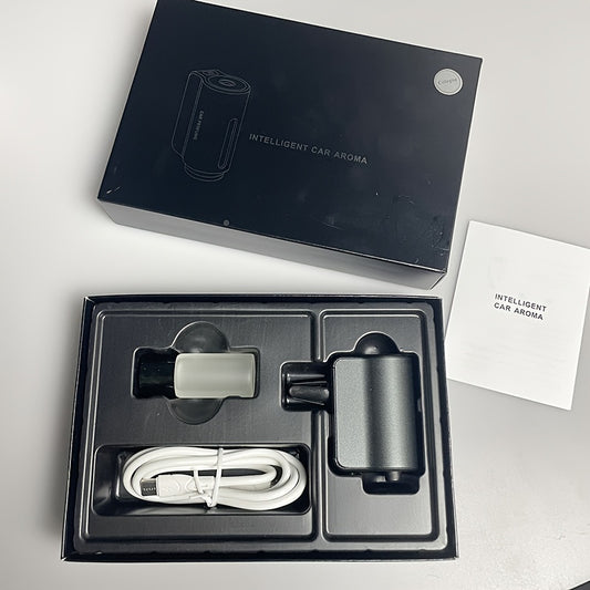 Difusor de aromaterapia inteligente para saída de ar do automóvel - Formato cilíndrico, alimentado por uma bateria de lítio recarregável, 3 modos de funcionamento, formato em spray para fragrância fresca.