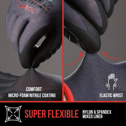 JOISIV 3/6 Pares de Luvas de Trabalho em Nitrilo - Revestidas com Microespuma, Antiderrapantes e Respiráveis, ideais para Jardinagem, Mecânica, Armazém e Tarefas de Bricolage.