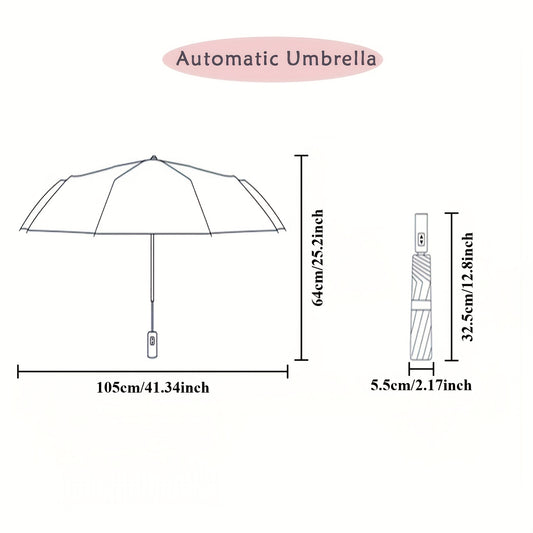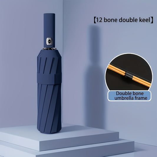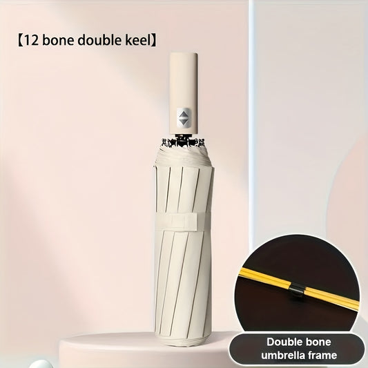 Large Automatic Folding Umbrella - Double Rib Design, Windproof &, 12 Ribs, Compact & Durable, Black with Orange Accents, Dual User Coverage, | Fashion Accessory | High-quality Fabric, Outdoor Umbrella