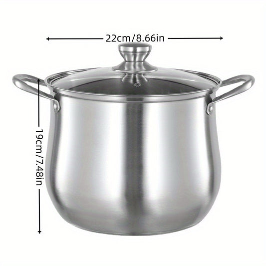 Large Capacity Stainless Steel Soup Pot with Lid, Perfect for Induction Stove, Gas Stove, and Outdoor Camping - Ideal for Cooking, Boiling, and Steaming, Camping Essentials|Stainless Steel Pot|Durable Cookware