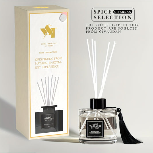 Luxury Hotel Series Reed Diffuser Set - 100ml Large Capacity, Long-Lasting Scent (5-7 Weeks) for Living Room and Bedroom - Spice Fragrance, Swiss Raffinerie Ingredients, Glass and Rattan, Cylinder Shape, Under 1L - Ideal for