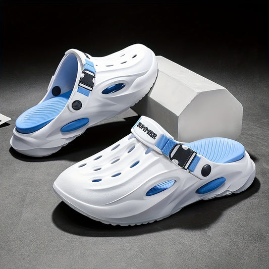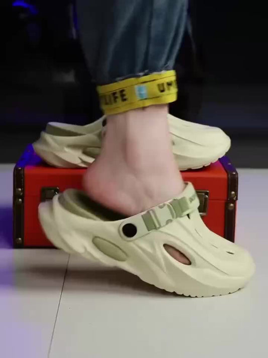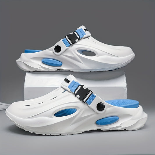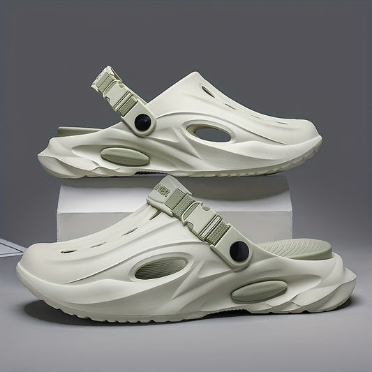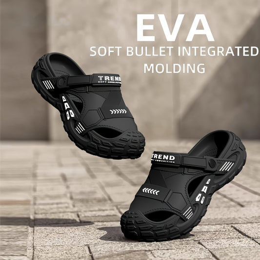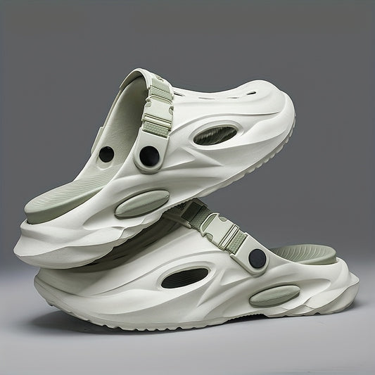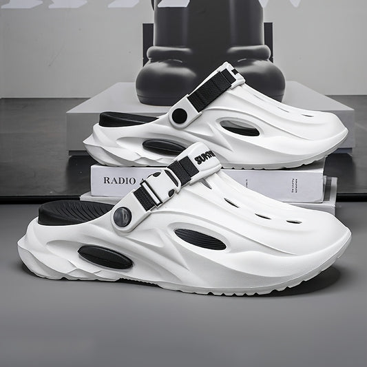 Sandálias de verão unissexo em EVA - Leves, respiráveis, antiderrapantes e confortáveis para a praia, caminhadas e uso casual. Sola macia, bico aberto, design elegante em preto e branco. Calçado de verão | Material EVA