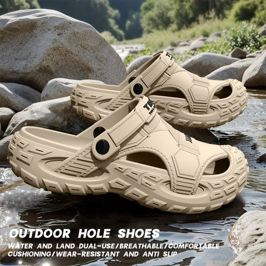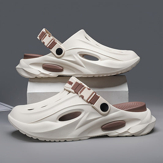 Men's & Unisex Slip-On - Adjustable Strap & Buckle Closure, Non-Slip Tread Sole, Brown/Orange/Black/Grey - Lightweight Cushioned Beach Shoes for Poolside, Casual, Vacation - Comfortable Indoor/ Slippers, Mules For Men, Indoor