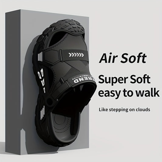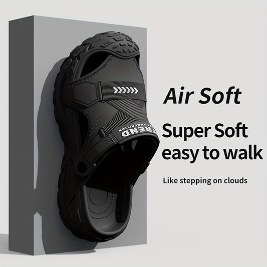 Sandálias respiráveis para homem de bico aberto - Calçado casual confortável para caminhada, com tira ajustável, topo em material sintético e sola de borracha, perfeito para looks casuais.