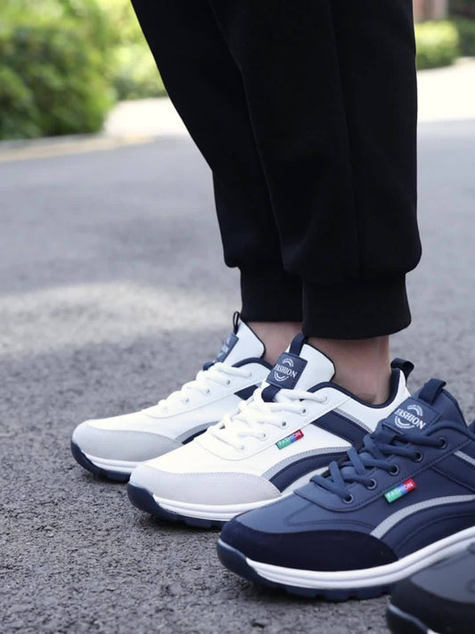 Men's All-Season Breathable Sneakers - Non-Slip Cushioned MD Sole, White/Gray/, Lace-Up Mid-Top Sneakers for Running, Gym, Hiking, Everyday - Extended Sizes Available, Outdoor Activities, Geometric Pattern, Secure Fit, Versat
