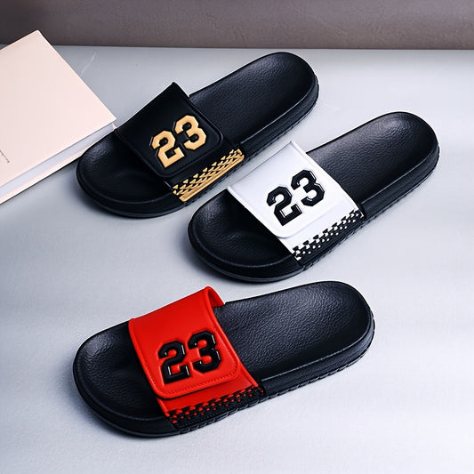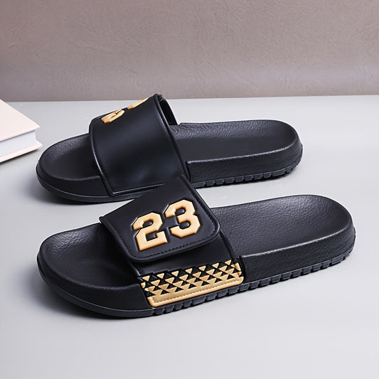 Men's Lightweight Adjustable Beach Sandals with 23 Number Design - Slip-On & Closure, PVC Upper & EVA Cushioned Sole, Non-Slip Comfort for Poolside, Vacation, Casual Wear - Black/Red Color Options, Vacation Footwear, Sporty S
