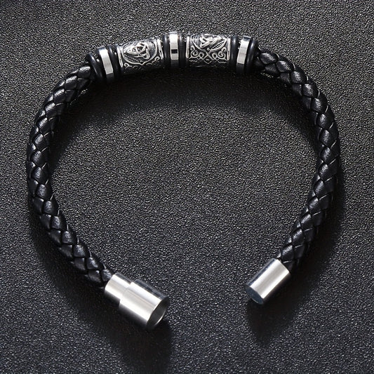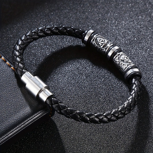 Pulseira de homem em pele sintética entrançada à mão - Pulseira elegante e ajustável de 21 cm com várias camadas, acessório durável para uso diário e festas, um excelente presente para ele.