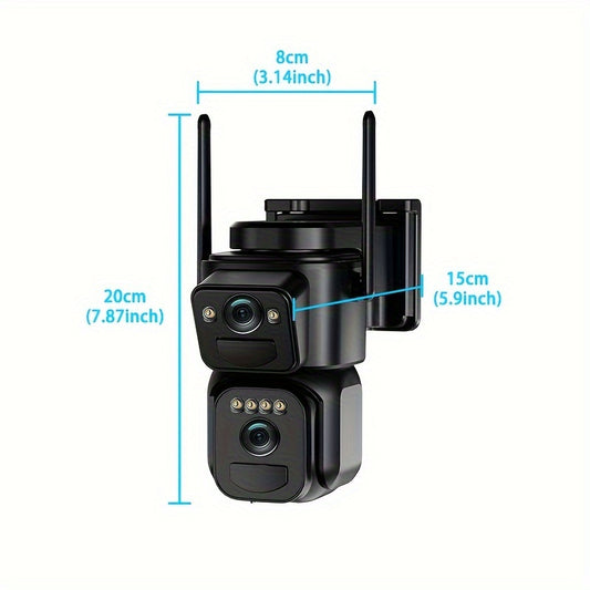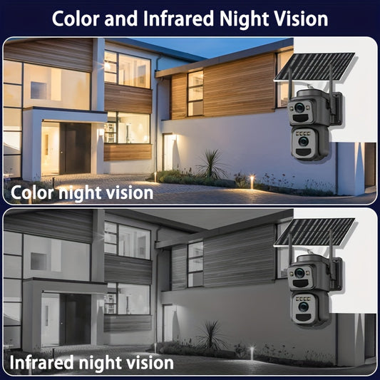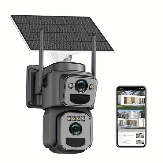 Multifunctional Security Camera with Solar Panel 2K 300W Pixel Video Resolution Wireless Outdoor WiFi Security Monitoring High-definition Dual Lens Automatic Rotation Pan Tilt Night Vision Motion Detection Bidirectional Call