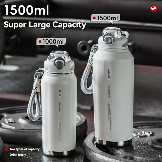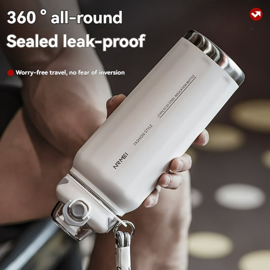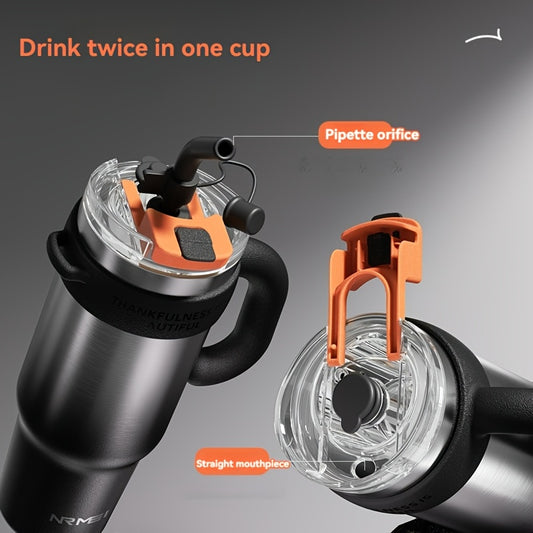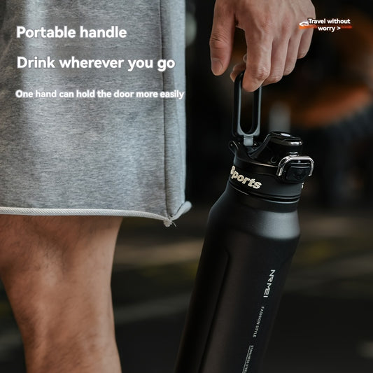 Garrafa de água NRMEI de aço inoxidável de 1,2 litros com pega - Boca dupla - À prova de fugas - Adequada para suportes de copos de automóvel