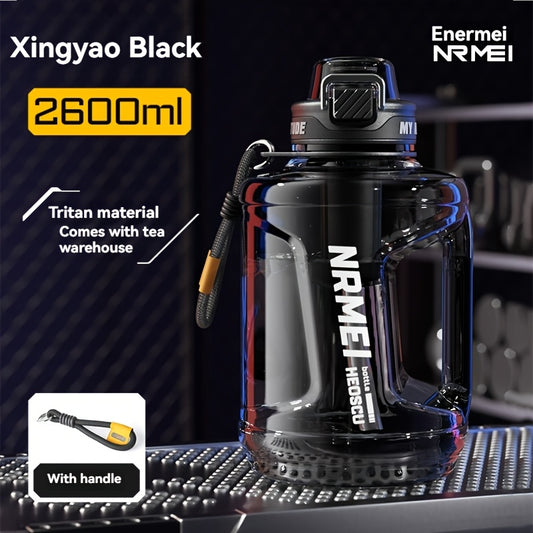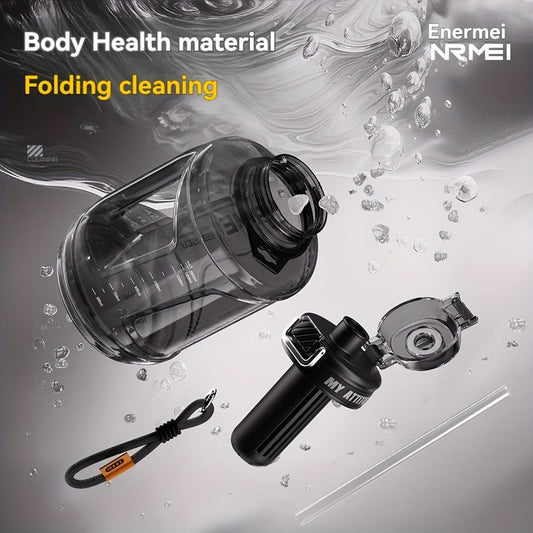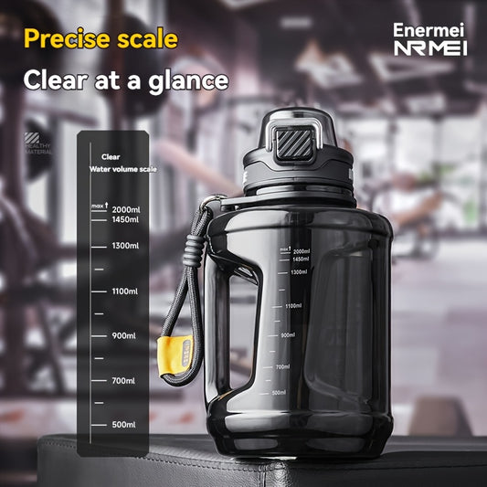 Garrafa de água NRMEI de 1,9 litros com marcador de tempo - Garrafa de hidratação de 1,9 litros livre de BPA, garrafa de água desportiva grande com palhinha e tampa, pega, adequada para campismo e ginásio.