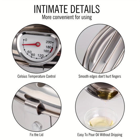 1pc Deep Fryer, Frying Pan With Lid, Stainless Steel Fryer With Temperature Control And Oil Drop Filter Rack, Suitable For Kitchen French Fries, Chicken And More, Gas Stove Electromagnetic Stove Universal, Kitchen Cookware