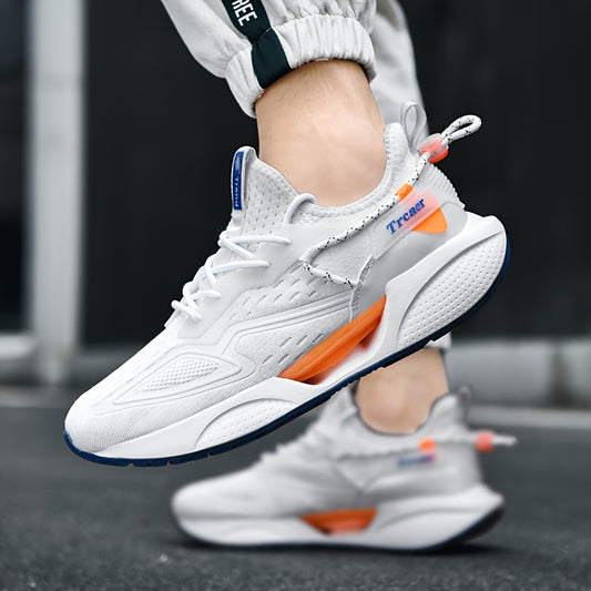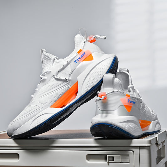 Panyan Wolfcaw Men's Sneakers - White/Black/Orange Sneakers with Air Cushion Technology, Arch Support & Non-Slip MD/TPU Sole - Low-Top Breathable Running Gym Shoes for Casual, Training, Casual Attire - All-Season Comfortable