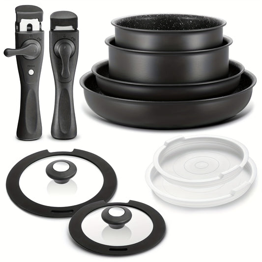 Pan Set With Removable Handles, Pots And Pans Set With Lid, Induction Pots Set 10pcs, Non-stick Coating, For All Types Of Stoves