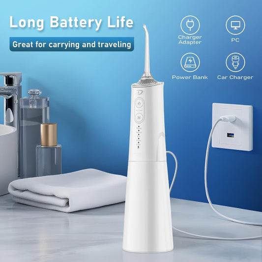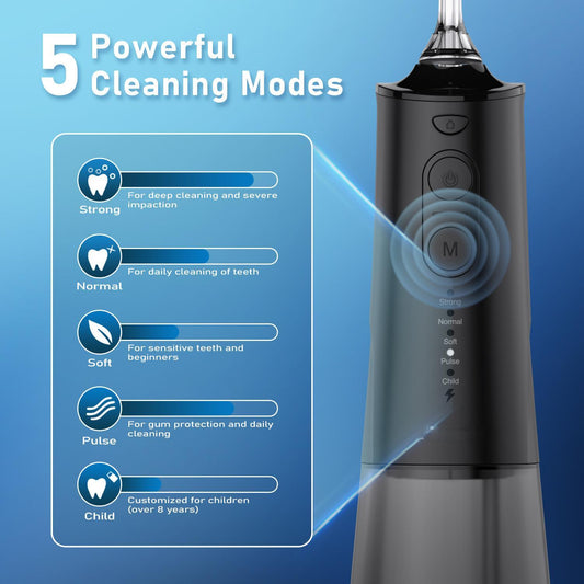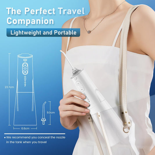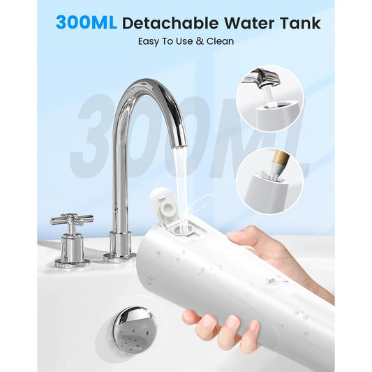 Portable Oral Irrigator, water flosser for teeth, Professional Cordless Dental Irrigator 8 Nozzles 5 Modes, IPX7 Waterproof 300ML USB-C Rechargeable For Cleaning Teeth, Home & Travel