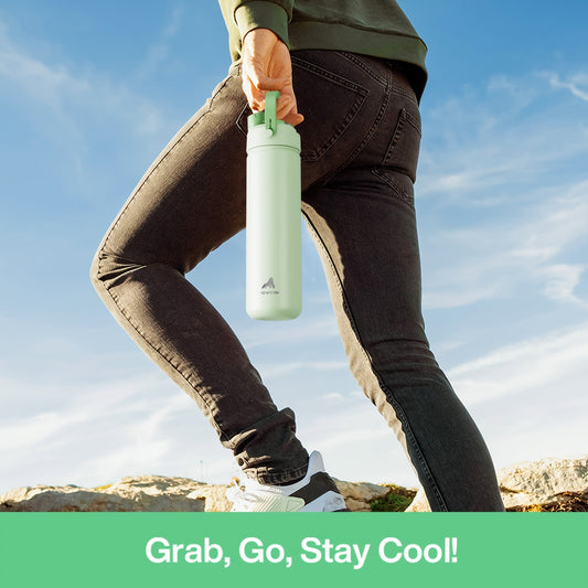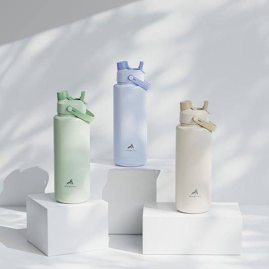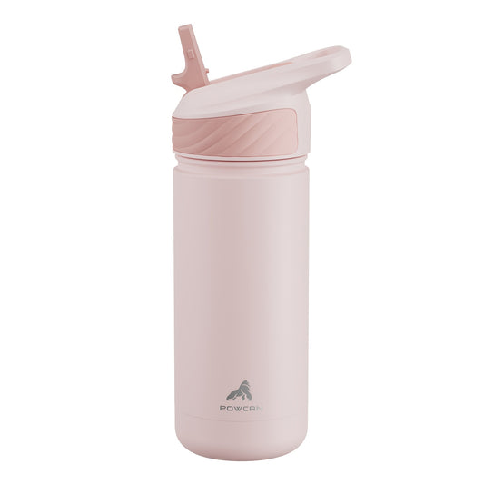 Powcan 18oz Stainless Steel Insulated Water Bottle Double Wall Insulated Bottle Travel Mug with Flip-Top Straw Lid, Leakproof Reusable Sip Cup with Handle, Sports Drinking Cup for Gym, Office, or Car Use