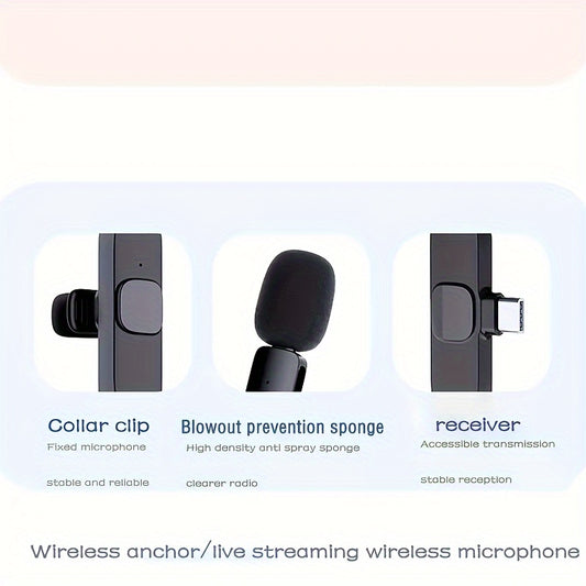 Portable Wireless Lavalier Microphone - USB-C Clip On Recording System, Suitable for Smartphones And Laptops, Ideal for Vlogs, Live Streaming, And Interviews, Content Creation Mic, Vlogging Equipment, Compact Design, Clipon M