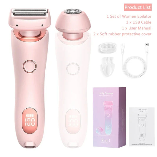 Lâmina de barbear elétrica portátil 2 em 1, à prova de água e indolor, para uso feminino nas zonas íntimas, aparador de pelos, depiladora e máquina de barbear para a zona das virilhas.