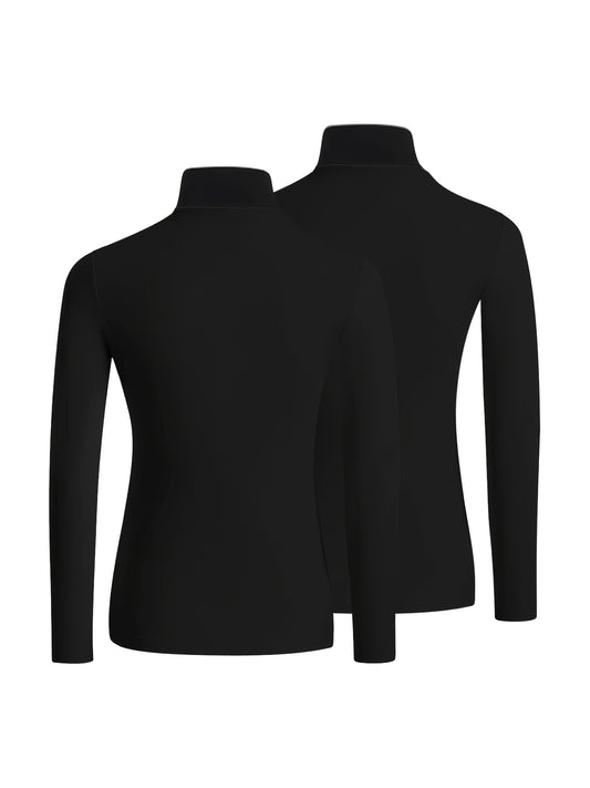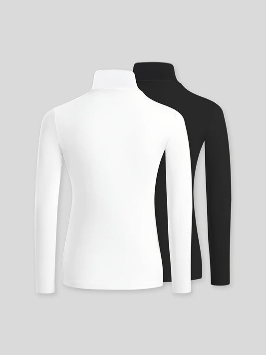 Solid Color Slim Fit Long Sleeve High Neck Pullover T-Shirt Two-Piece Set