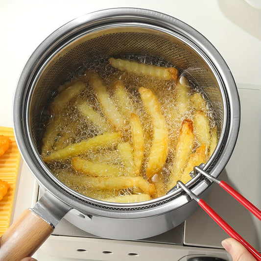 Stainless Steel Multi-Purpose Cookware Set with Frying Basket And Glass Lid - Non-Stick Saucepan, Deep Fryer, Noodle Boiler, Milk Pan, Food Steamer, Suitable for Induction & Gas Stoves