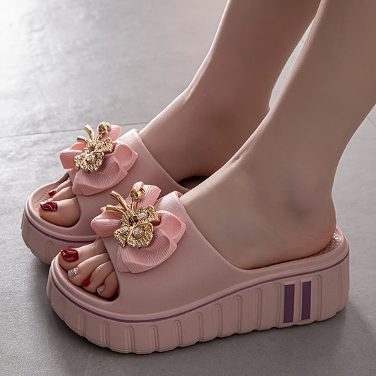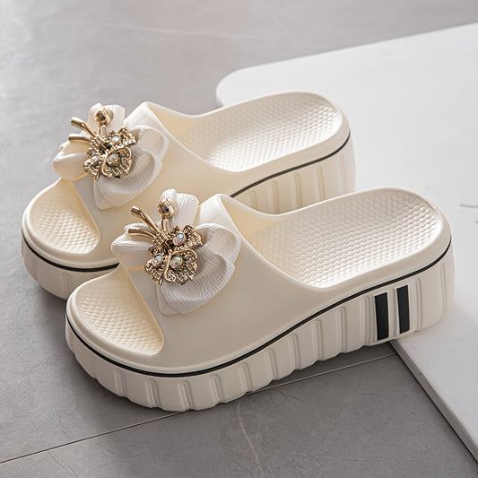 Women'S Elegant Floral Embellished Slide Sandals - Summer 2025 Collection, Non-Slip, Odor-Resistant, Durable Beach Shoes with Thick Cushioned Sole for Indoor/Outdoor Comfort, Indoor Slippers | Floral Embellished Sandals | EVA