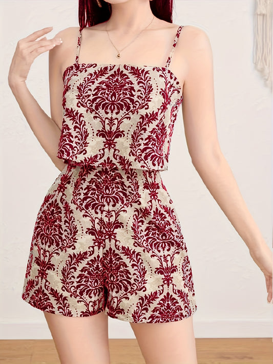 Calças elegantes para mulher com estampado paisley e alças finas - Tecido leve (35%) com bolsos laterais e sem elasticidade, ideal para ocasiões casuais e formais na primavera/verão.