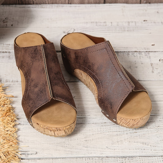 Women'S Vintage Style Flat Heel Sandals, Solid Color Open Toe Slip-on Slides with Rivet Detail, All-Season Comfort, Faux Sole, Man-Made Materials - Summer Fashion Footwear