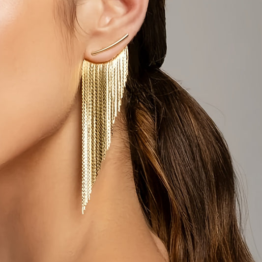 YOYO Women's Sparkling KC Golden-Plated Irregular Tassel Drop Earrings - Bohemian Retro Statement Jewelry with Cascading Leaf-like Design, Luxury Party Wedding Everyday Dangle Earrings for Christmas Gifts & Special Occasions