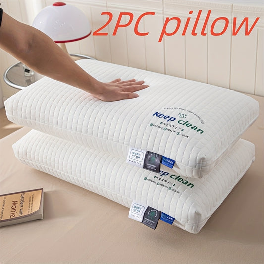 2 Ergonomic Luxury Neck Pillows - Adjustable Cervical Support, Breathing Fabric & Machine Washability for All Sleepers (Side/Back), Hotel-Quality Comfort in Elegant Textured White with Zipper Cover