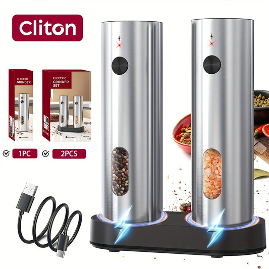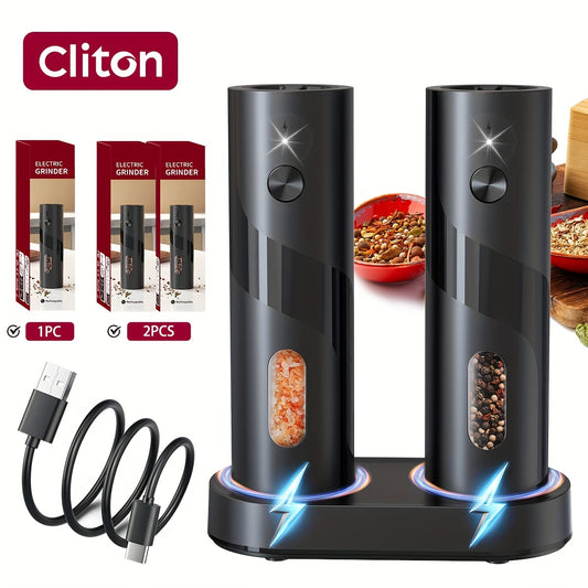 1pc/2pcs - CLITON Rechargeable Salt And Pepper Grinder Set, Salt And Pepper Grinder Electric 2pcs, Rechargeable Salt And Pepper Shakers Set, Electric Salt And Pepper Container, USB Rechargeable with LED Light, Multiple Style