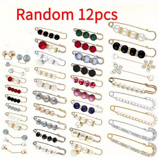 12pcs/Set(Styles And Sizes Mixed Randomly) Assorted Size Combination Set Randomly Packed. Waist Pins for Adjusting Waist Size, Multifunctional Clips for Securing Clothing, Suspenders, Skirts, And Anti-Exposure Pants Clips. Su