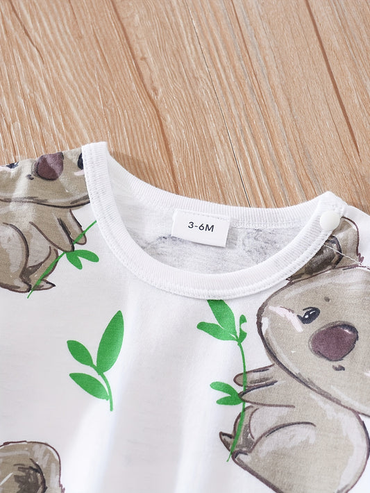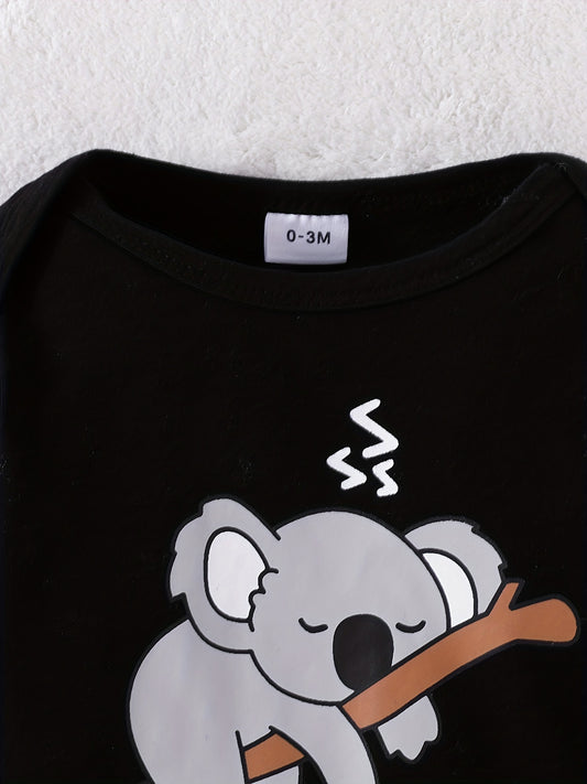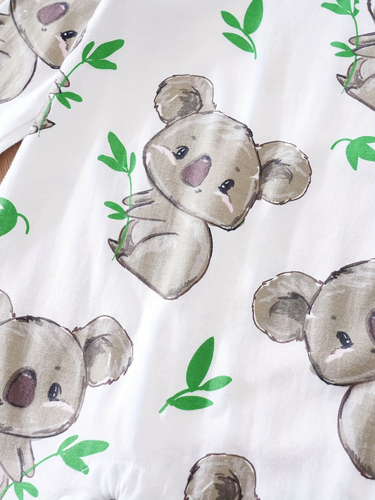 Macacão de manga comprida com gola redonda para bebé com estampado fofo de coala de desenho animado
